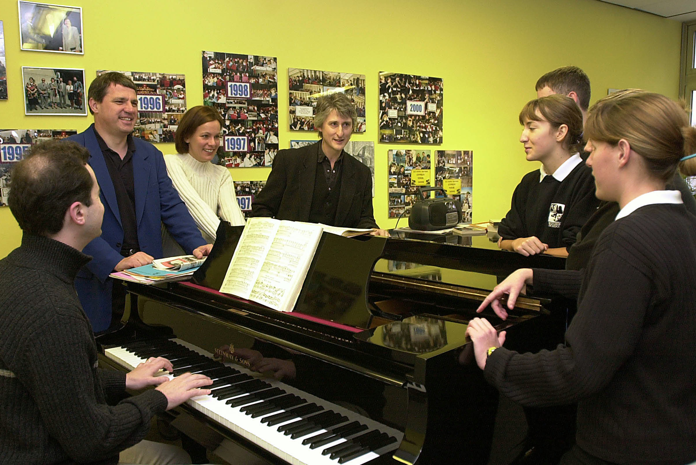 GMD ANTHONY BRAMALL AND MONCHENGLADBACH MUSICIANS VISIT WINDSOR SCHOOL. The Music Department at Windsor School received a visit from Anthony Bramall, the General music Director at Monchengladbach Theatre on Thursday 8th November. The visit followed a recent outing by 40 staff and students from Windsor School to the theatre in Monchengladbach - Rheydt to see a production of "Dreigroschenoper" by Bertold Brecht, set to the music of Kurt Weill. The students included those preparing for Advanced Level examinations in German, Music and Theatre Studies. As expected, the 'opera' lent itself very well to appreciation by a cross-curricular mix of students. The performance had received very favourable reviews and was a great hit with everyone. It was during the visit that Frau Doris Rath from the Theatre Monchengladbach asked if a visit by the GMD and some musicians would be of interest, especially since an outing to see the opera"Don Giovanni" by Mozart in Rheydt was already in the planning. Anthony Bramall arrived with four colleagues, two singers and two mucicians who spent an hour and a half with the students, telling them about Mozart's music and "Don Giovanni" in particular. To have singers and musicians from the production to perform excerpts from the opera live proved a great enrichment to the students' appreciation of the work of Mozart in general. Doubtless the theatre visit will be at least as rewarding as the last and probably more so. The Windsor School students were complimented on the level of interest shown and the visitors left with very possitive impressions of the school and its standards of music in particular. (Story by: Chris Stoll, Windsor School). Date:08/11/01 Task Number UKSC(G)01_119 Location; Rheindahlen, Germany Photo By: Sgt Rick Elsworth Photo Shows : 4th from left, Anthony Bramall with his musicians and Windsor School students. BFG Press Office G3 Media Ops HQ UKSC(G), BFPO 140. Tel No: 00 49 2161 472169 CROWN COPYRIGHT